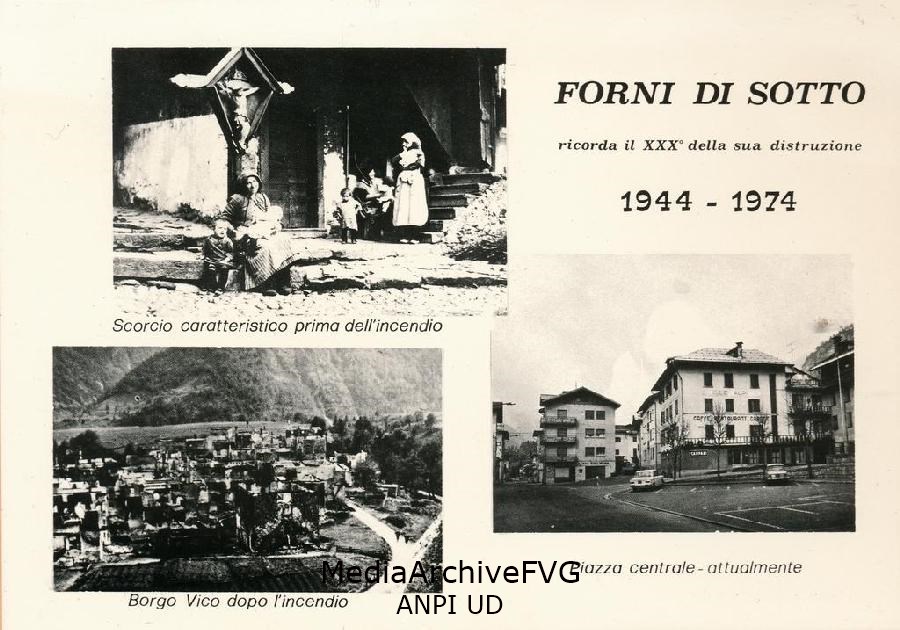 Cartolina commemorativa della distruzione di Forni di Sotto (1944-1974)