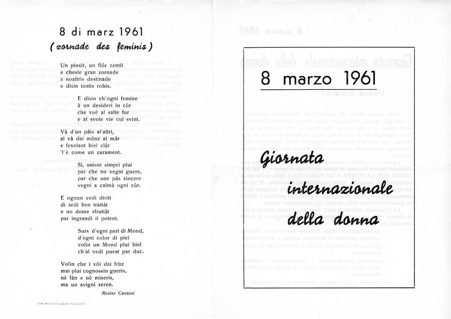 Un numero del periodico "La Voce della donna", mensile dell'Udi di Treviso e un volantino dell'Udi di Udine all'8 marzo.