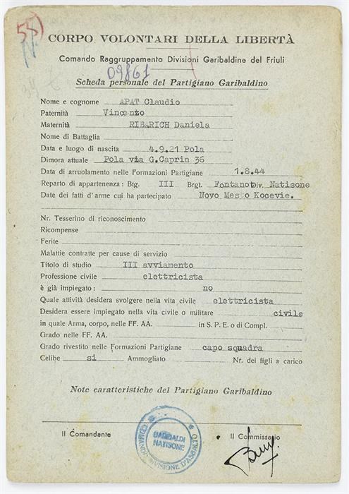 ANPI - Comitato provinciale di Udine - Fondo Schede Anagrafiche