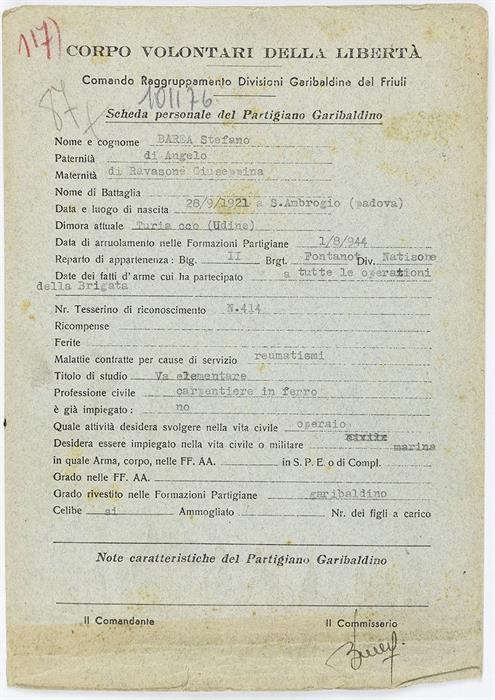 ANPI - Comitato provinciale di Udine - Fondo Schede Anagrafiche