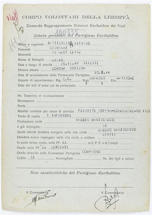 ANPI - Comitato provinciale di Udine - Fondo Schede Anagrafiche