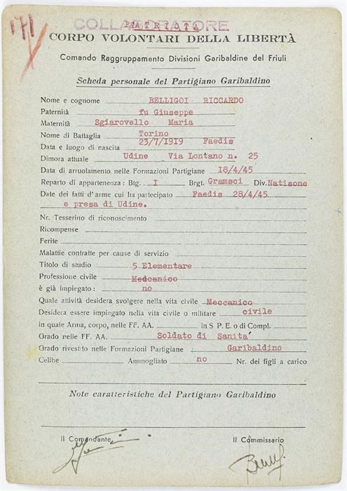 ANPI - Comitato provinciale di Udine - Fondo Schede Anagrafiche
