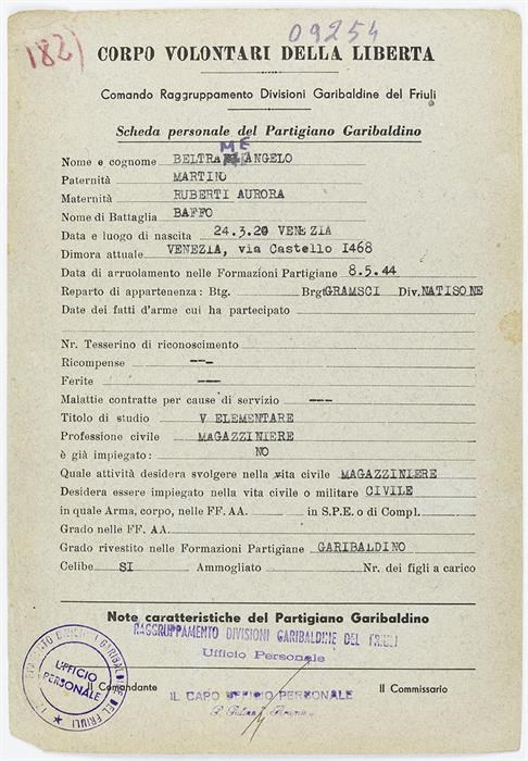 ANPI - Comitato provinciale di Udine - Fondo Schede Anagrafiche