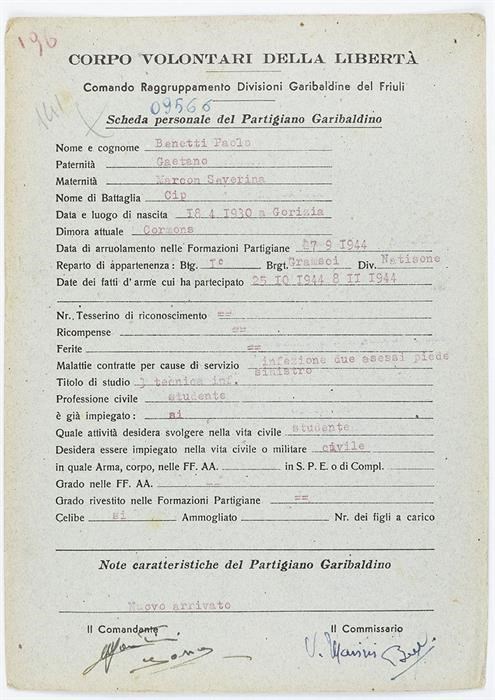 ANPI - Comitato provinciale di Udine - Fondo Schede Anagrafiche
