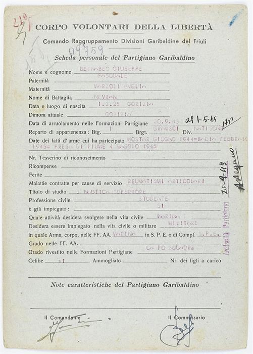 ANPI - Comitato provinciale di Udine - Fondo Schede Anagrafiche