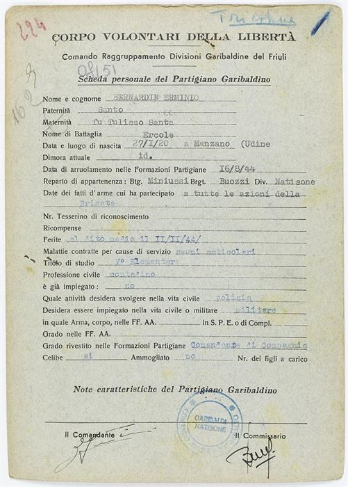 ANPI - Comitato provinciale di Udine - Fondo Schede Anagrafiche