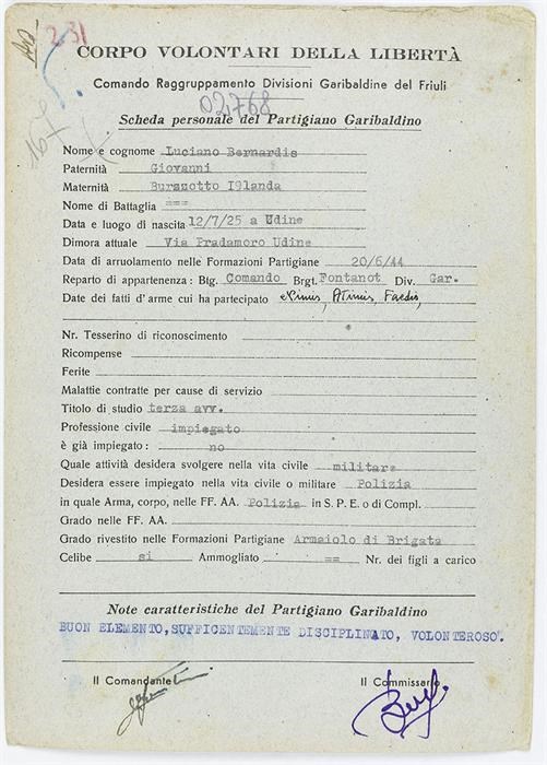 ANPI - Comitato provinciale di Udine - Fondo Schede Anagrafiche