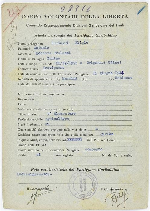 ANPI - Comitato provinciale di Udine - Fondo Schede Anagrafiche