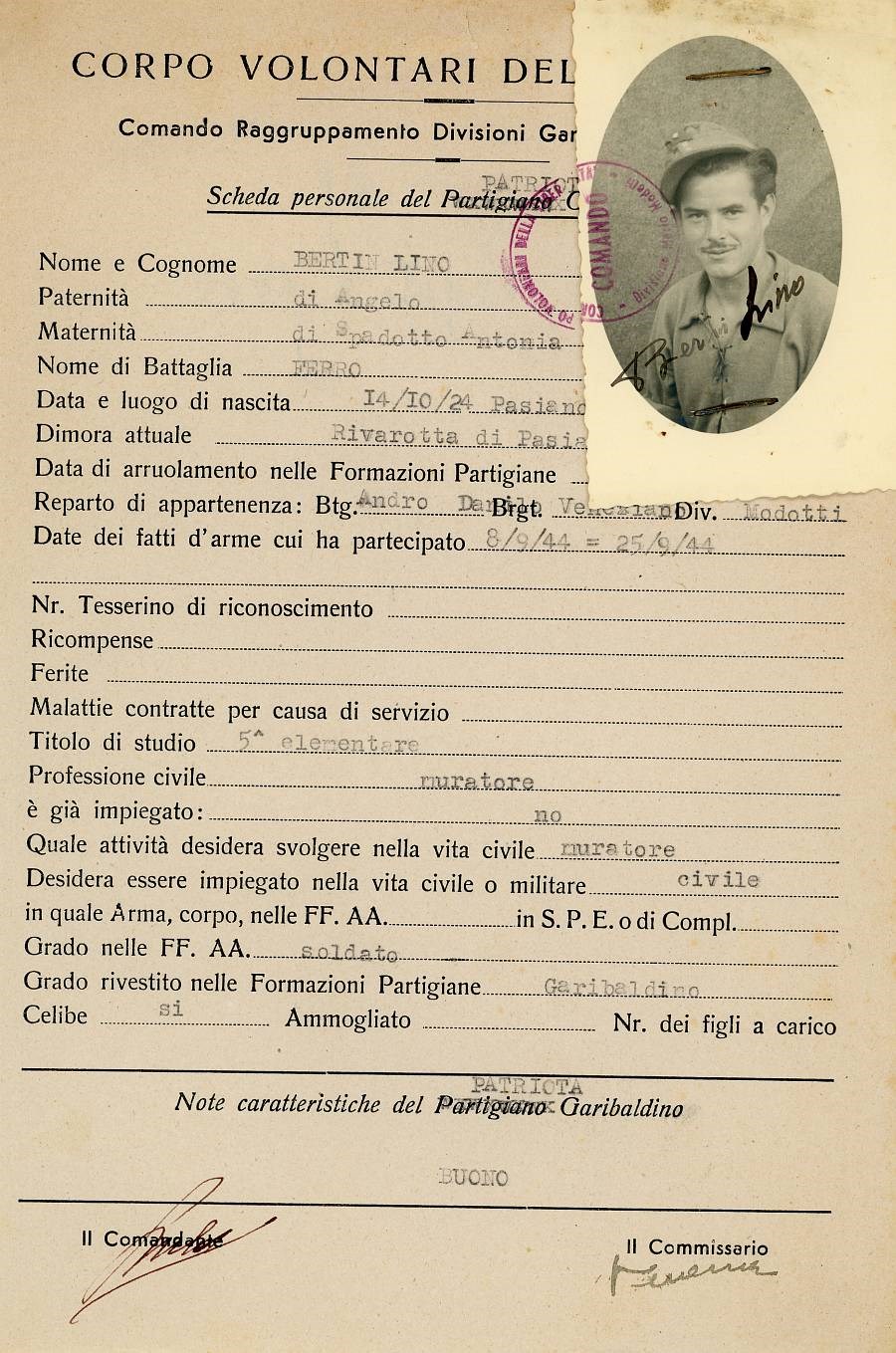 ANPI - Comitato provinciale di Pordenone - Archivio Storico ANPI - Comitato provinciale di Pordenone - Schede del partigianato