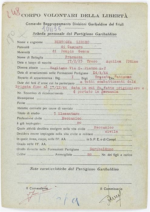 ANPI - Comitato provinciale di Udine - Fondo Schede Anagrafiche