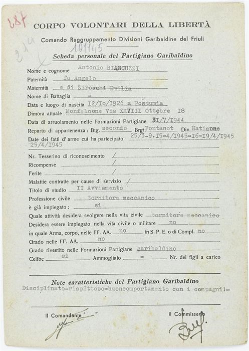 ANPI - Comitato provinciale di Udine - Fondo Schede Anagrafiche