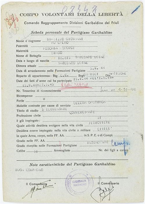 ANPI - Comitato provinciale di Udine - Fondo Schede Anagrafiche