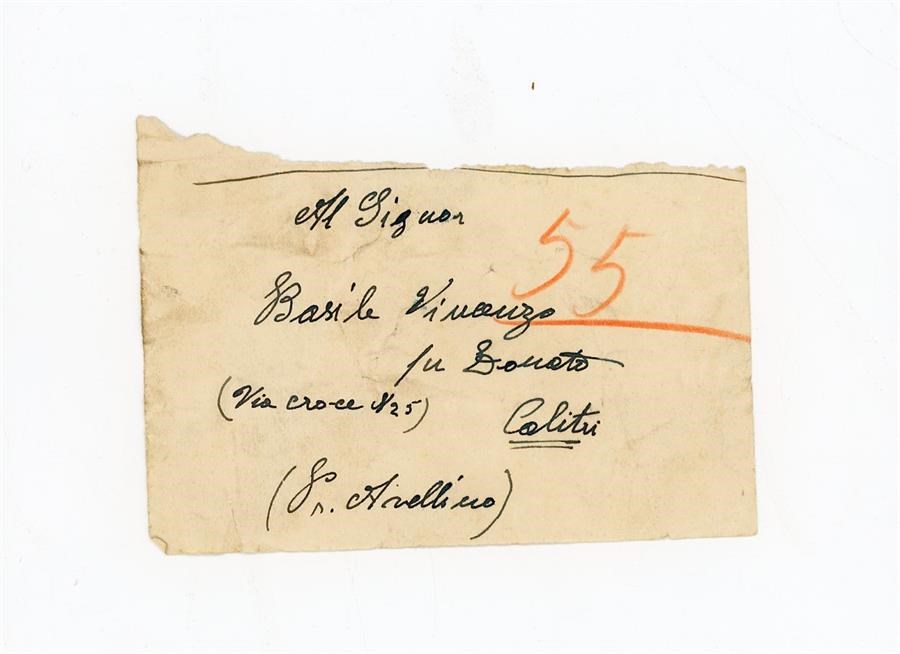 Bigliettino anonimo indirizzato a Basile Vincenzo figlio di Basile Donato, di Calitri, provincia di Avellino.