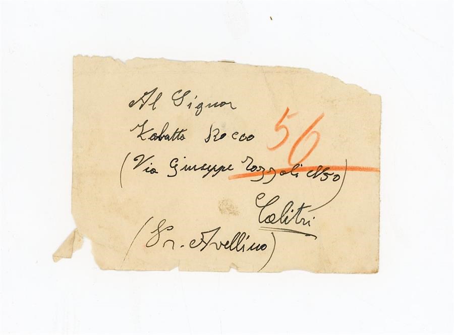 Bigliettino anonimo indirizzato al signor Zabatta Rocco, di Calitri, provincia di Avellino.