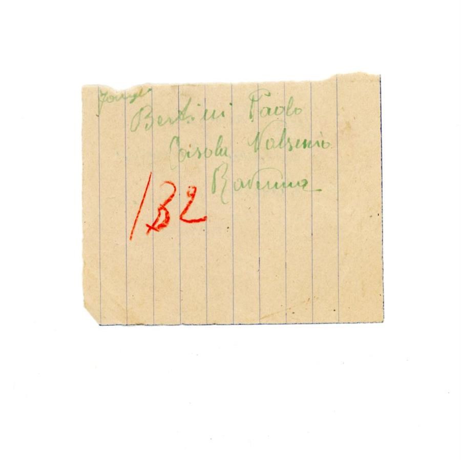 Bigliettino anonimo su cui è indicato un nome, Bertini Paolo e di un luogo, Casola Valsenio, in provincia di Ravenna.