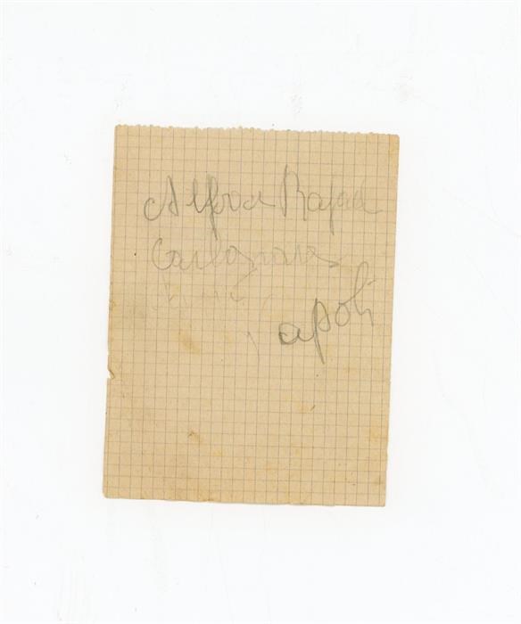 Bigliettino anonimo con l'indicazione di un nome, Alfio Rafael e di un luogo, Carbonara di Nola, in provincia di Napoli.