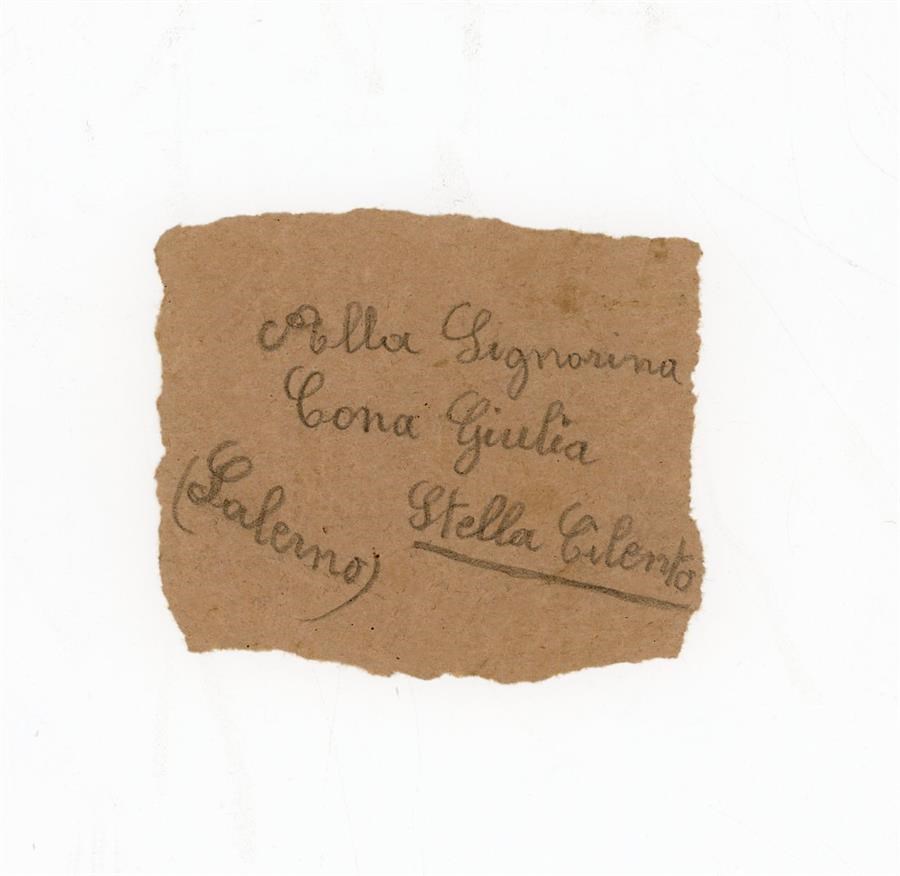 Bigliettino anonimo alla signora Cona Giulia, con l'indicazione di un luogo, Stella Cilento, in provincia di Salerno.