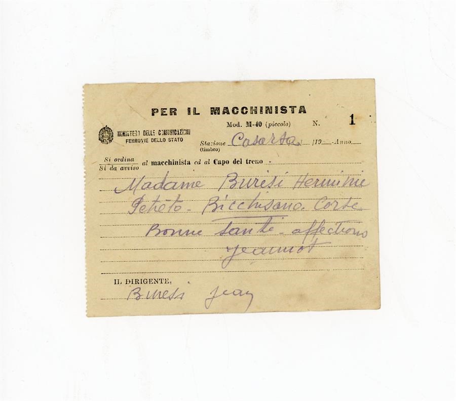 Bigliettino di Buresi Jean indirizzato con tanto affetto alla signora Buresi Herminie, di Petreto-Bicchisano, Corsica. È presente l'indirizzo. Il soldato deportato scrive di trovarsi a Casarsa. Il soldato deportato scrive di essere in buona salute. È presente la traduzione in italiano del messaggio.