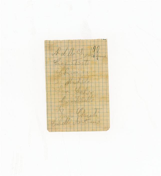 Bigliettino di Cibelli Antonio al signor Cibelli Giuseppe, con l'indicazione di un luogo, Orsara di Puglia, in provincia di Foggia; bigliettino di Cibelli Antonio alla signorina [Ciacitosti] Chiara, con le indicazioni dei luoghi di Montebello e San Salvo, entrambi in provincia di Chieti.
