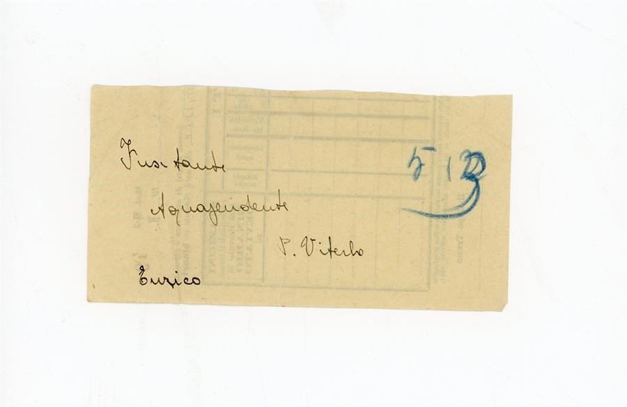 Bigliettino di Enrico con l'indicazione di un nome [Fusitante] e di un luogo, Acquapendente, in provincia di Viterbo.