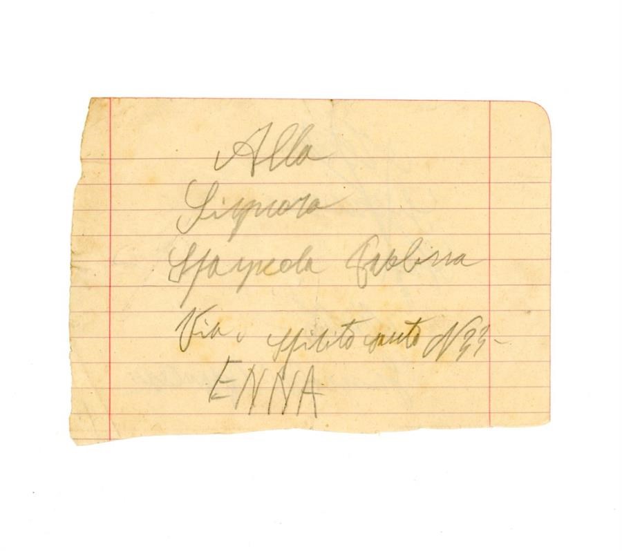 Bigliettino di Grimaldi Francesco alla signora Spagnolo Paolina, di Enna. È presente l'indirizzo.