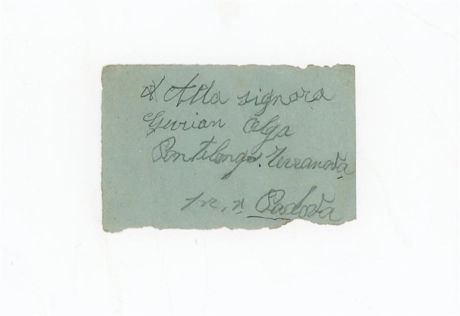 Bigliettino di Gurian Ermenegildo alla moglie Gurian Olga, con l'indicazione della località di Terranova di Pontelongo, in provincia di Padova.