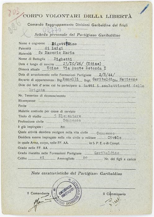 ANPI - Comitato provinciale di Udine - Fondo Schede Anagrafiche