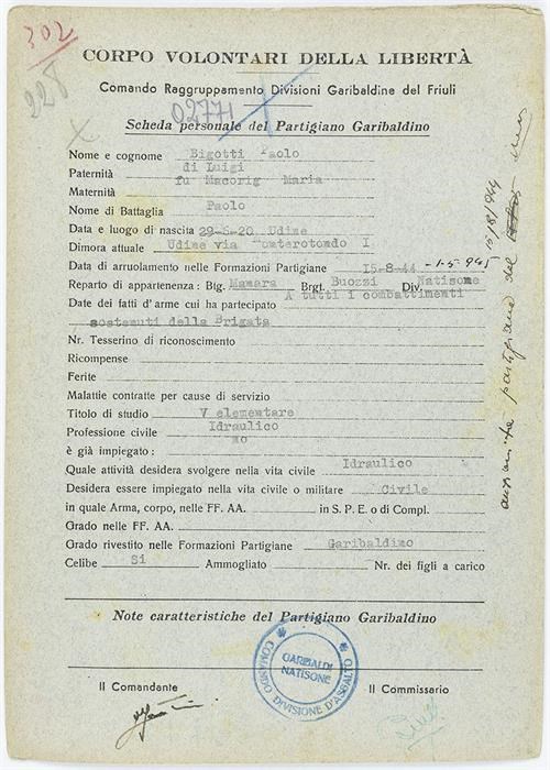 ANPI - Comitato provinciale di Udine - Fondo Schede Anagrafiche