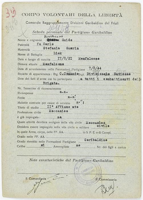 ANPI - Comitato provinciale di Udine - Fondo Schede Anagrafiche