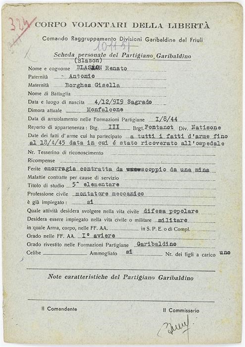 ANPI - Comitato provinciale di Udine - Fondo Schede Anagrafiche