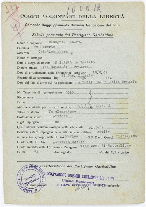 ANPI - Comitato provinciale di Udine - Fondo Schede Anagrafiche