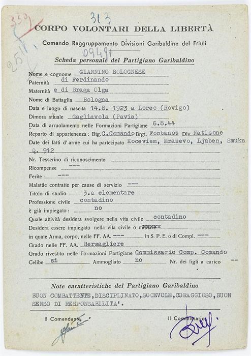 ANPI - Comitato provinciale di Udine - Fondo Schede Anagrafiche