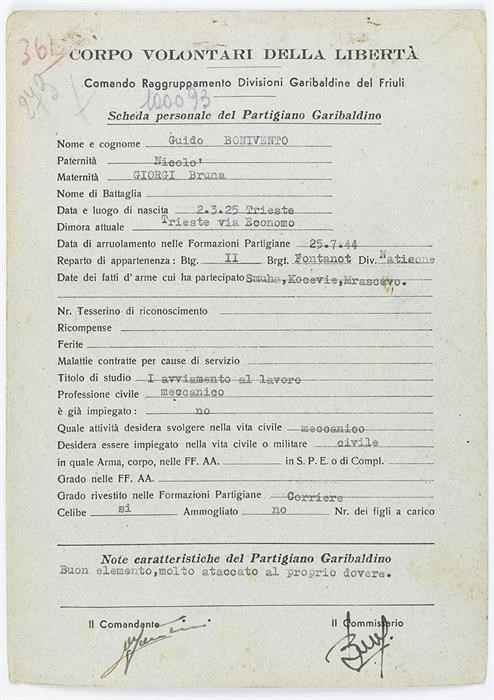 ANPI - Comitato provinciale di Udine - Fondo Schede Anagrafiche