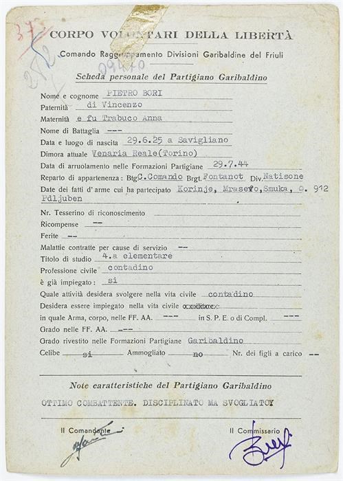 ANPI - Comitato provinciale di Udine - Fondo Schede Anagrafiche