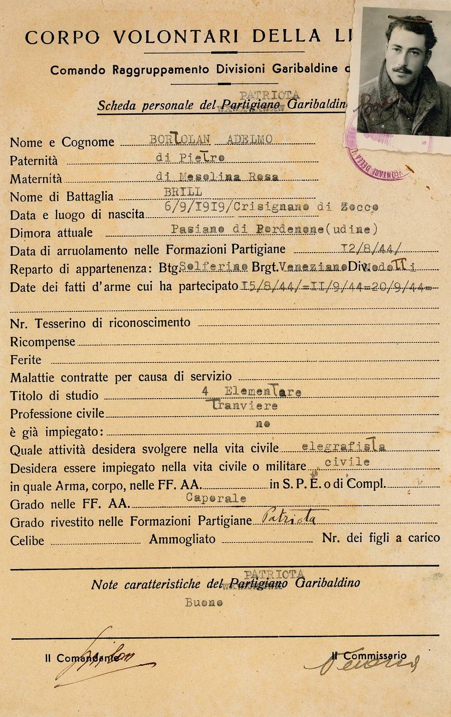 ANPI - Comitato provinciale di Pordenone - Archivio Storico ANPI - Comitato provinciale di Pordenone - Schede del partigianato
