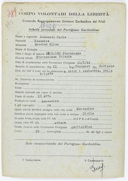 ANPI - Comitato provinciale di Udine - Fondo Schede Anagrafiche