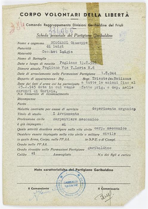 ANPI - Comitato provinciale di Udine - Fondo Schede Anagrafiche