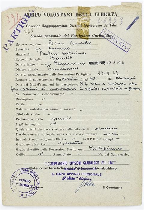 ANPI - Comitato provinciale di Udine - Fondo Schede Anagrafiche