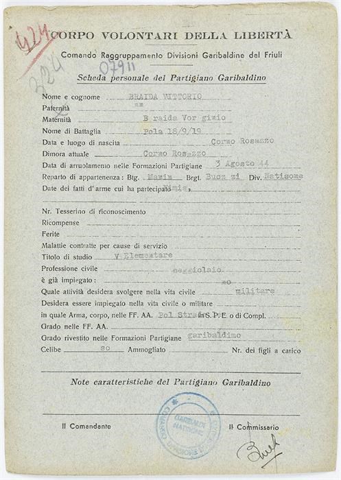 ANPI - Comitato provinciale di Udine - Fondo Schede Anagrafiche