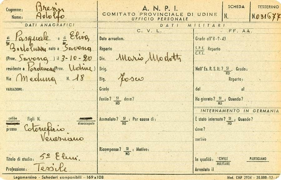 ANPI - Comitato provinciale di Pordenone - Archivio Storico ANPI - Comitato provinciale di Pordenone - Schede del partigianato