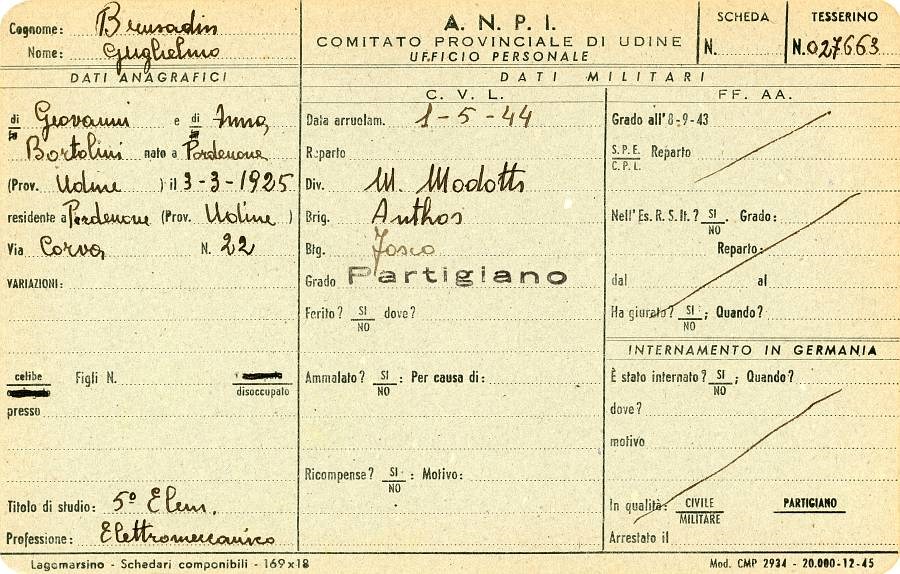 ANPI - Comitato provinciale di Pordenone - Archivio Storico ANPI - Comitato provinciale di Pordenone - Schede del partigianato