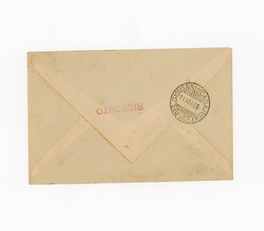 Busta anonima indirizzata all'Associazione Giovanile Cattolica di San Giovanni di Casarsa. Il mittente scrive da Albo di Mergozzo, all'epoca in provincia di Novara, ora in provincia del Verbano Cusio Ossola.
