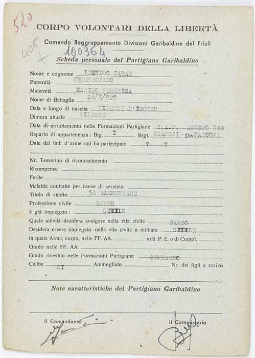 ANPI - Comitato provinciale di Udine - Fondo Schede Anagrafiche