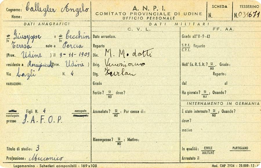 ANPI - Comitato provinciale di Pordenone - Archivio Storico ANPI - Comitato provinciale di Pordenone - Schede del partigianato