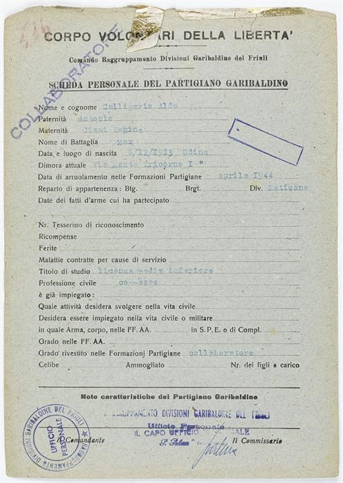 ANPI - Comitato provinciale di Udine - Fondo Schede Anagrafiche