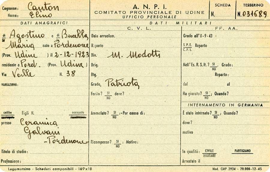 ANPI - Comitato provinciale di Pordenone - Archivio Storico ANPI - Comitato provinciale di Pordenone - Schede del partigianato