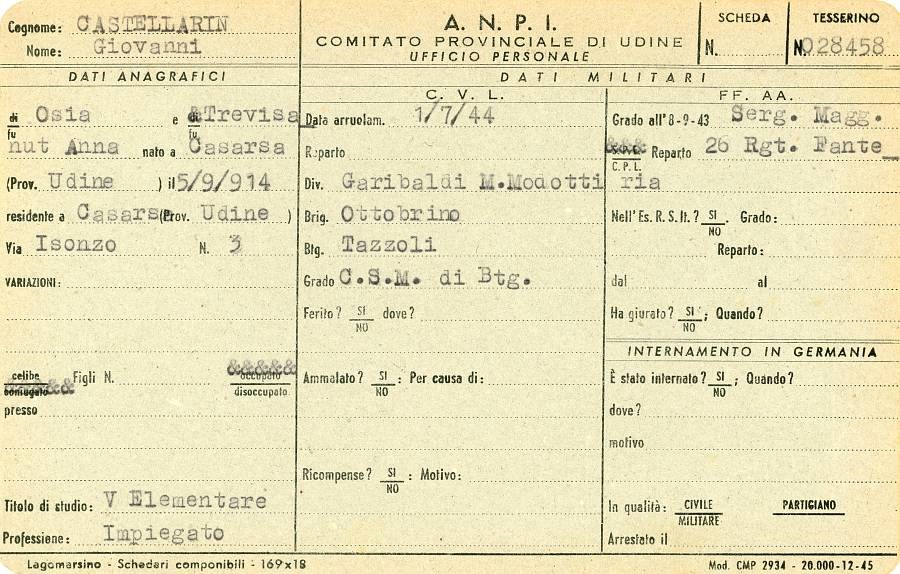ANPI - Comitato provinciale di Pordenone - Archivio Storico ANPI - Comitato provinciale di Pordenone - Schede del partigianato