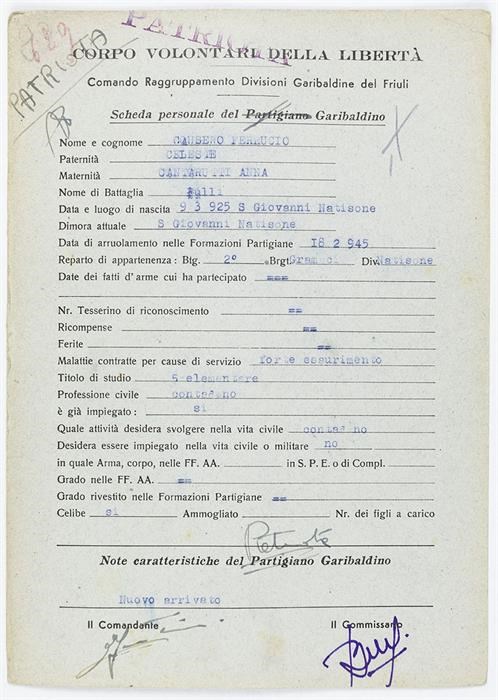 ANPI - Comitato provinciale di Udine - Fondo Schede Anagrafiche