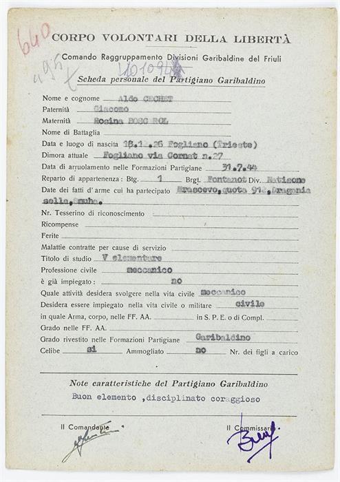 ANPI - Comitato provinciale di Udine - Fondo Schede Anagrafiche