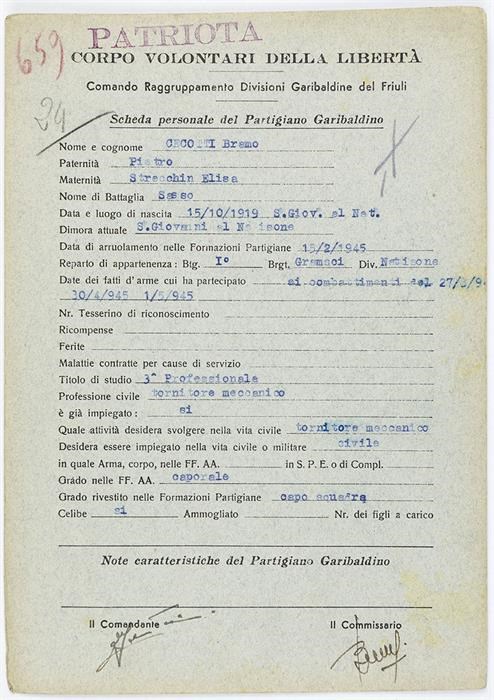 ANPI - Comitato provinciale di Udine - Fondo Schede Anagrafiche